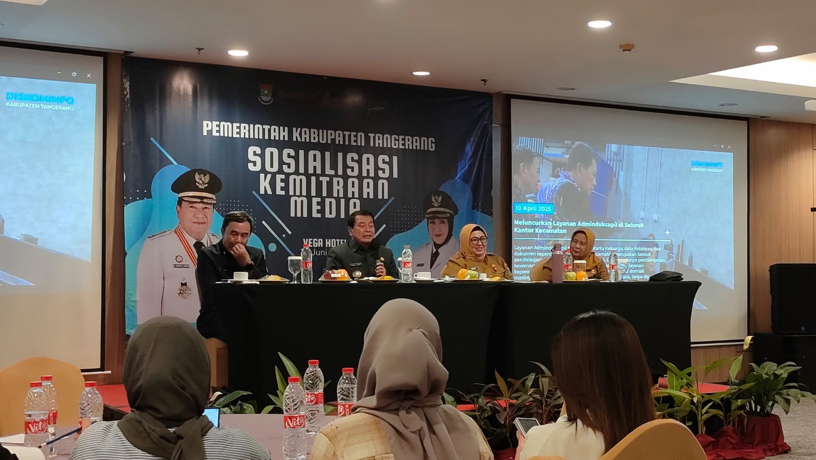 Didampingi oleh Wakil Bupati Intan Nurul Hikmah, Sekda Soma Atmaja, serta sejumlah kepala dinas, Bupati Maesyal bertemu langsung dengan puluhan jurnalis di Kabupaten Tangerang untuk menyampaikan laporan perkembangan program prioritas.