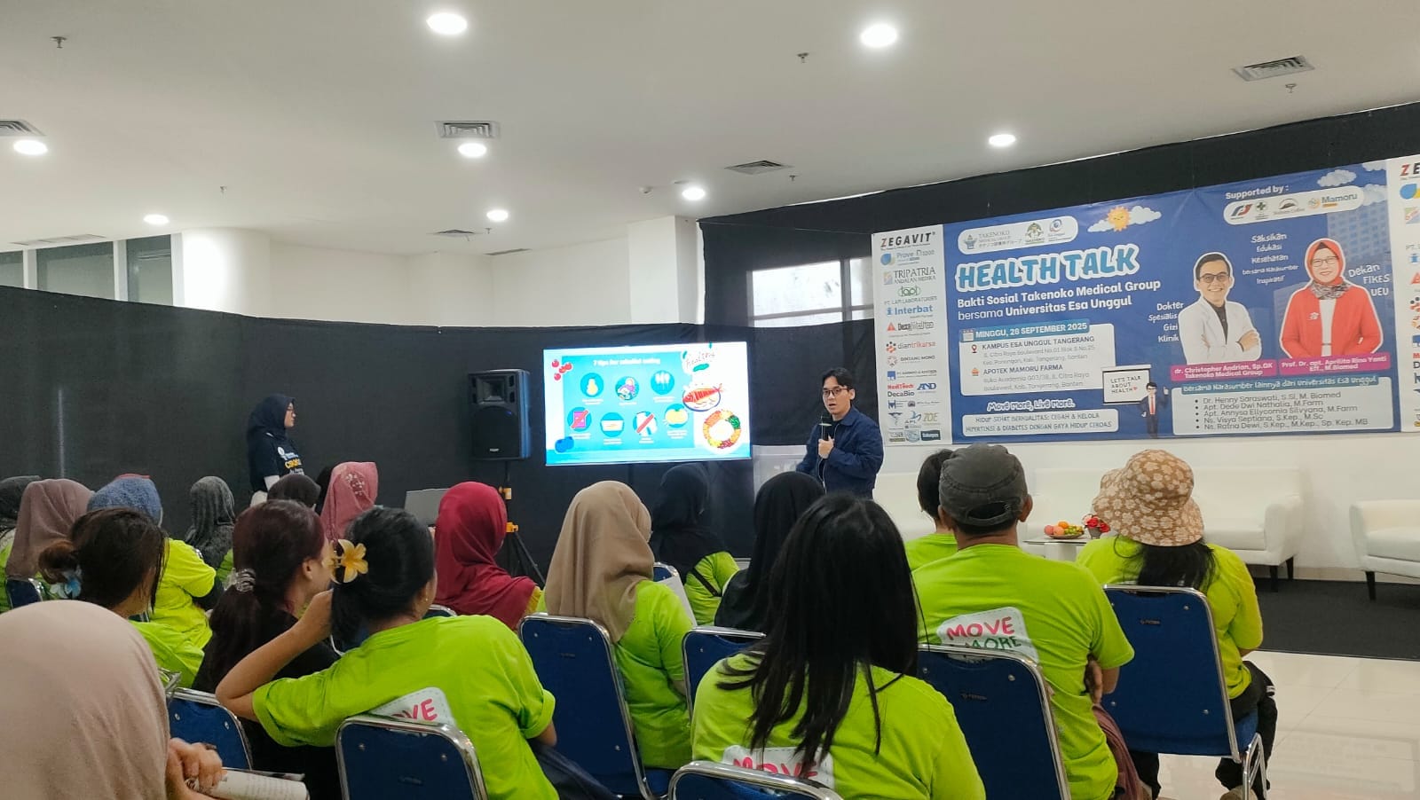 Sebagai bagian dari perayaan 21 tahun, Takenoko Medical Group bersama Universitas Esa Unggul menghadirkan talkshow interaktif yang membahas pentingnya deteksi dini hipertensi dan diabetes, serta gaya hidup sehat. (Foto: Ist)