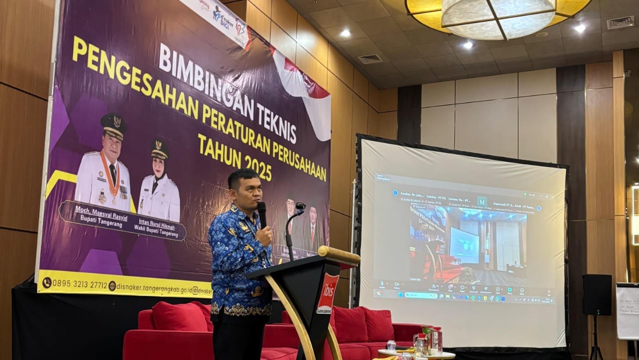 Kegiatan ini digelar pada Senin (22/9/2025) di salah satu hotel kawasan Gading Serpong, Kelapa Dua, dengan menghadirkan narasumber dari Kementerian Ketenagakerjaan. Puluhan peserta dari berbagai perusahaan di Kabupaten Tangerang turut hadir dalam acara tersebut.