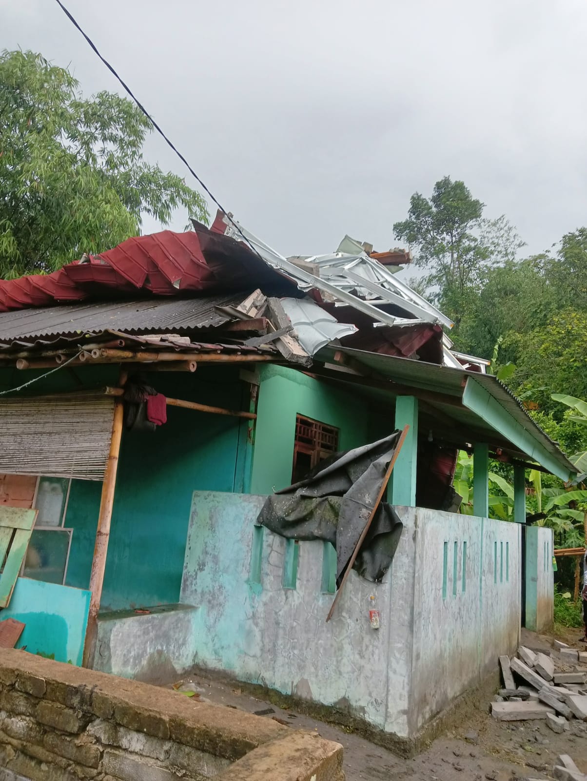 Salah satu dampak paling parah terlihat pada sebuah rumah tinggal, di mana seluruh rangka atap dari bahan baja ringan tercabut dan terbang diterpa angin, bahkan menghantam properti rumah bersebelahan. Untungnya, insiden ini tidak menimbulkan korban jiwa atau luka-luka serius, karena kejadian berlangsung saat sebagian besar warga sedang berada di luar rumah untuk beraktivitas.