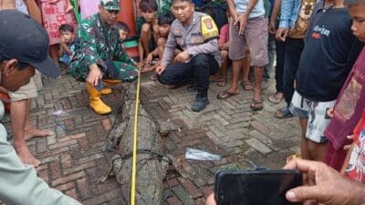 PANDEGLANG | BD – Warga Kampung Cinutug, Desa Kubangkampil, Kecamatan Sukaresmi Kabupaten Pandeglang berhasil menangkap seekor buaya dengan panjang dua meter dan berat 90 kilogram di sungai Cisanggoma, Senin (8/1/2024) sekitar pukul 13.00 WIB.
